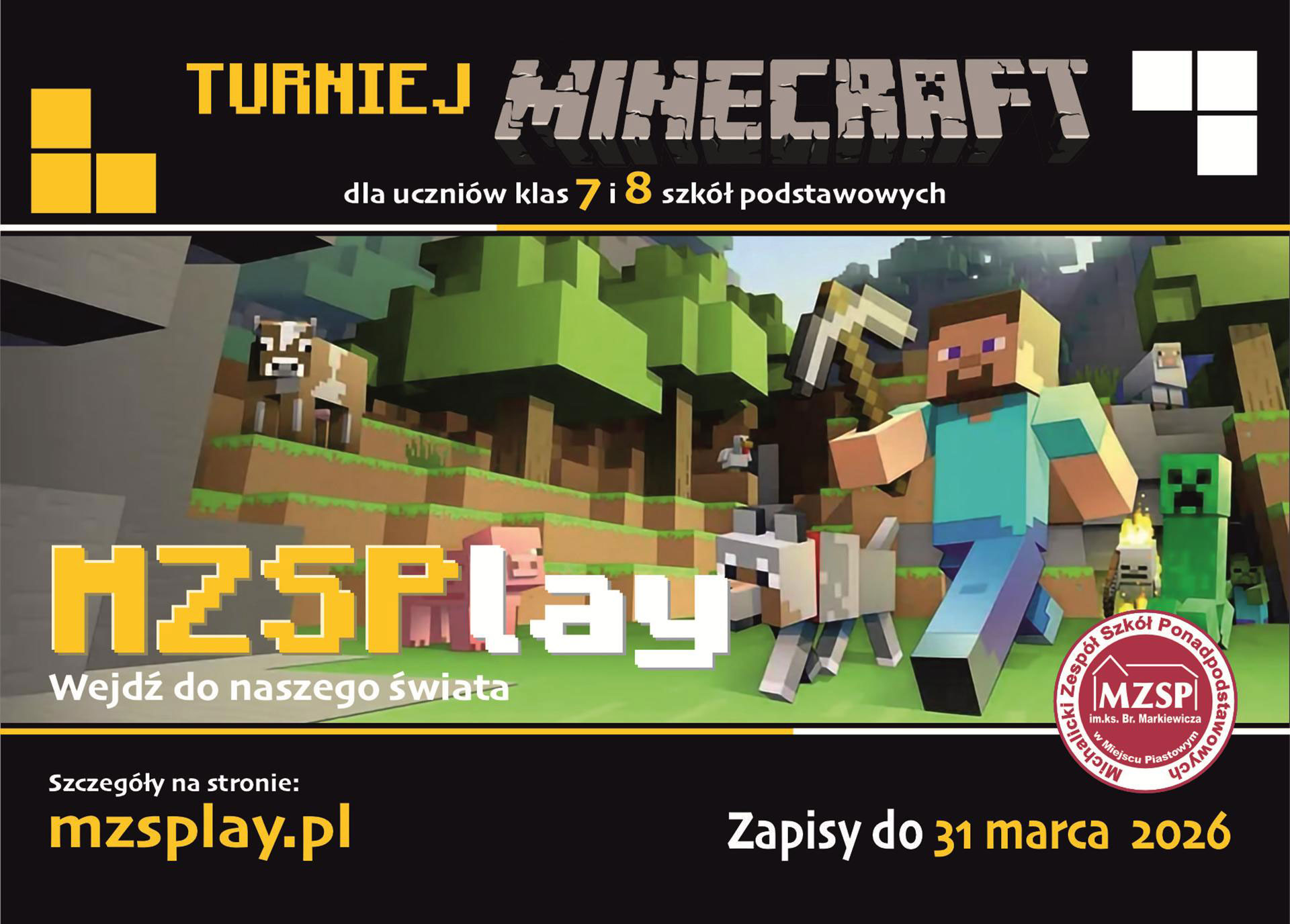 Zapraszamy uczniów klas 7 i 8 szkół podstawowych do udziału w Turnieju Minecraft organizowanym w ramach