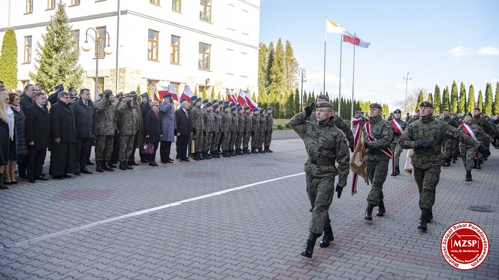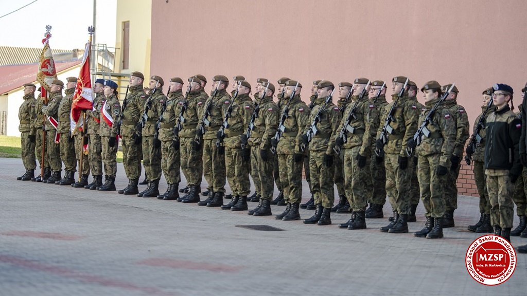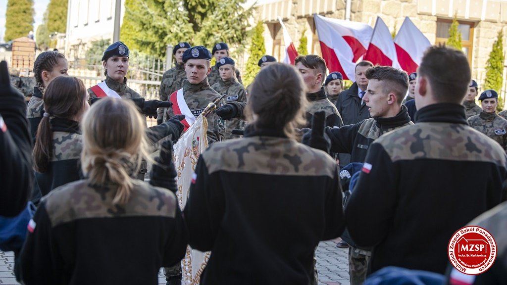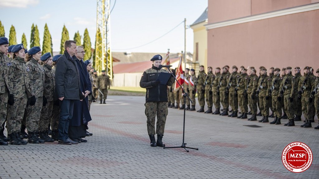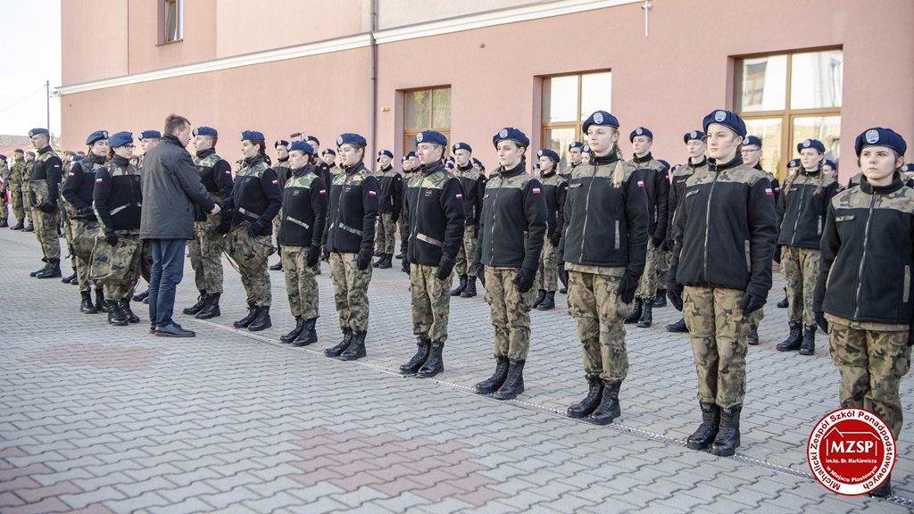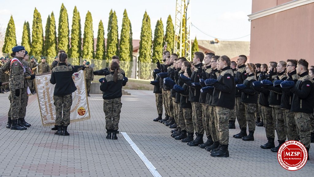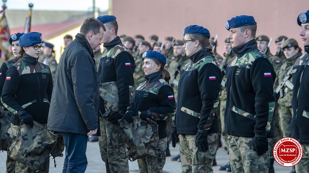 W środę 27 marca 2019 r., w Michalickim Zespole Szkół Ponadgimnazjalnych w Miejscu Piastowym odbyła się Uroczystość Ślubowania Klas Mundurowych Certyfikowanych przez MON. Rangę wydarzeniu nadała obecność Ministra Obrony Narodowej Mariusza Błaszczaka oraz towarzyszących mu Szefów Służb Mundurowych Podkarpacia. W ceremonii brało udział 180 uczniów, natomiast słowa przysięgi pierwszy raz wypowiedziało grono 60 dziewcząt i chłopców. Uczestnikami wydarzenia byli ponadto nauczyciele MZSP, liczne grono rodziców i przyjaciół młodzieży oraz władze Kuratorium Oświaty w Rzeszowie, Województwa Podkarpackiego, Powiatu Krośnieńskiego jak również Gminy Miejsce Piastowe. Obecni byli dyrektorzy szczebla wojewódzkiego instytucji, z którymi współpracuje szkoła, a także siostry zakonne i kapłani. Szef MON wyróżniającym się w szkoleniu uczniom – kadetom, złożył gratulacje, a wszystkim, ślubującym wręczył atrakcyjne upominki. Warto podkreślić, że Minister Obrony dołożył starań, aby po zakończeniu części oficjalnej w kameralnych okolicznościach porozmawiać z każdym uczniem klasy pierwszej mundurowej. Środowe wydarzenia poprzedziła msza św. pod przewodnictwem J.E. ks. abpa Józefa Michalika.