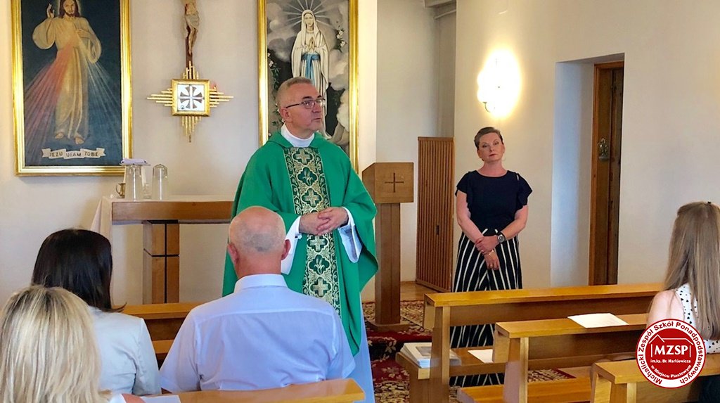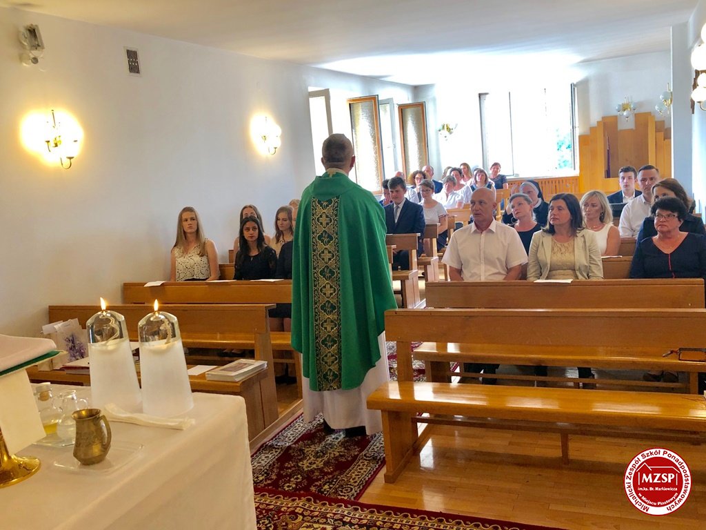 Uroczystość zakończenia Roku Szkolnego rozpoczęła msza św. w Sanktuarium, której przewodniczył oraz piękne słowa kazania wygłosił Ks. Dyrektor Leszek Przybylski. Pięknie odczytane teksty liturgiczne oraz wokal i akompaniament uczniów rozświetliły to wydarzenie.