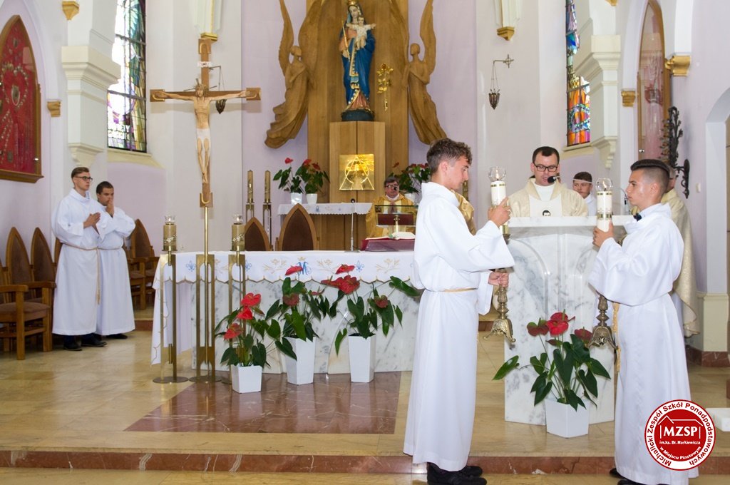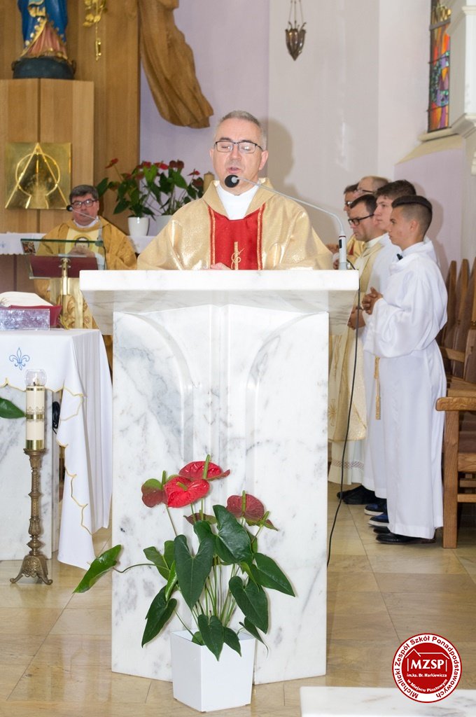 Mszę świętą zakończył ks. dyr. Leszek Przybylski dziękując koncelebrantom i zebranej młodzieży za udział w niej . Życzył owocnego w ciekawe wydarzenia roku szkolnego i nauki , który przysporzy młodzieży wiedzy i poprowadzi ku wyznaczonym celom.