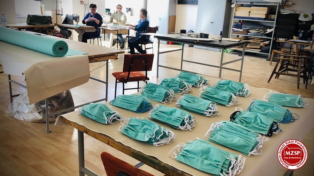 Wychodząc naprzeciw sugestiom krośnieńskiego środowiska lekarzy, jak również mając na względzie potrzebę wsparcia osób zatrudnionych w wielu dziedzinach służby publicznej Michalicki Zespół Szkół Ponadpodstawowych w Miejscu Piastowym podjął produkcję masek profilaktyczno – higienicznych. Działalność jest efektem zaangażowania nauczycieli praktycznej nauki zawodu, kierownictwa warsztatów i dyrekcji szkoły. Do produkcji zastosowano specjalny materiał o symbolu PN-EN ISO 13688, który spełnia normy umożliwiające wykorzystanie wyrobu nawet przy wysokim reżimie sanitarnym, jak również w wysoko standaryzowanych warunkach szpitalnych.