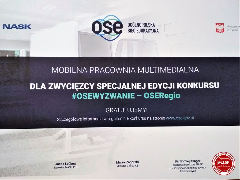 Nasza Szkoła wśród laureatów konkursu „#OSE Wyzwanie”. Pracownia mobilna dla MZSP.