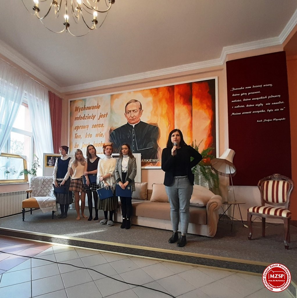 Po prezentacji zasłużone brawa otrzymały aktorki, które wiele dni przygotowywały się do wystąpień pod okiem s. Edwardy Grzywny, p. Marty Guzik oraz p. Renaty Kmak-Frydrych. O nagłośnienie wydarzenia zadbała p. Dominika Niedziela-Michalak.
