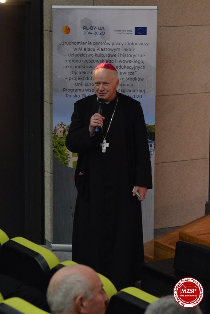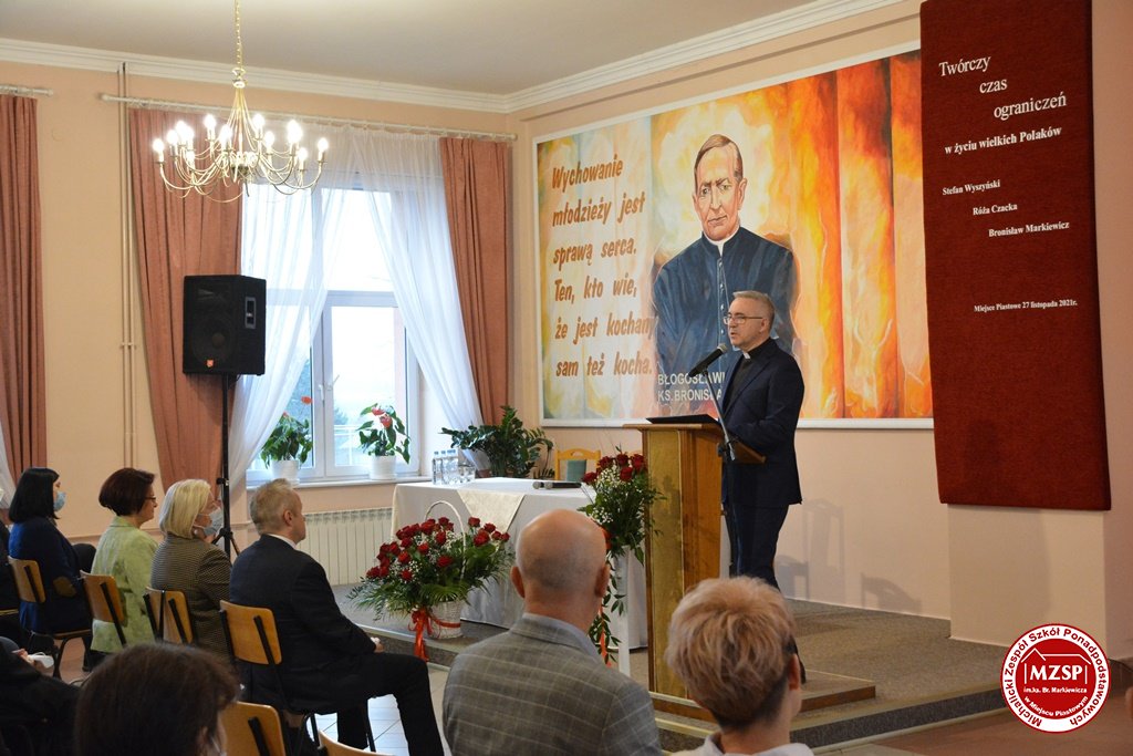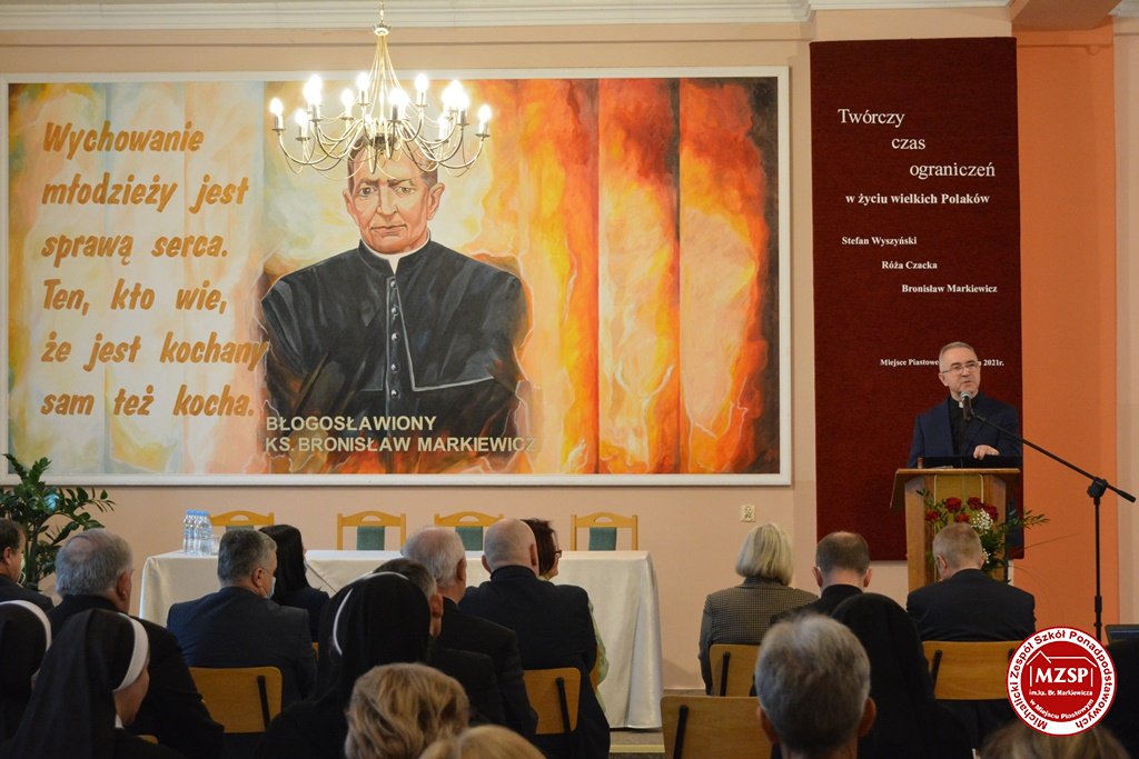W sobotę 27 listopada 2021 r. odbyła się w Miejscu Piastowym kolejna edycja sympozjum o wychowaniu. Temat spotkania brzmiał: „Twórczy czas ograniczeń w życiu wielkich Polaków – Stefan Wyszyński, Róża Czacka, Bronisław Markiewicz.” Wykłady zostały poprzedzone mszą świętą dziękczynną za beatyfikację nowych błogosławionych, którą z licznym gronem kapłanów sprawował abp Metropolita Przemyski Adam Szal. Obrady plenarne jak co roku odbyły się w auli naszej szkoły. Po raz pierwszy oprócz obecności na sali istniała możliwość uczestnictwa w wersji on-line. W miejscu obrad obecnych było 91 osób, natomiast blisko 200 użytkowników wzięło udział w konferencjach w sposób zdalny. Wśród gości oficjalnych należy podkreślić obecność parlamentarzystów, przedstawicieli służb mundurowych wśród nich insp. Leszka Buryłę Komendanta Miejskiego Policji w Krośnie oraz p. Stanisława Fundakowskiego Podkarpackiego Wicekuratora Oświaty. Całość wystąpień prelegentów w najbliższym czasie będzie można znaleźć na stronie mzsp.pl. Cieszy, że kolejny raz nasza szkoła gościła znamienitych gości oraz jej działalność została zauważona i doceniona w środowisku naukowym oraz przestrzeni medialnej.