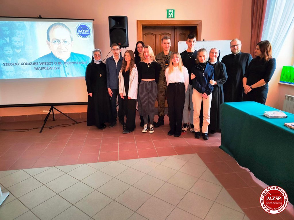 Dnia 26 stycznia 2022 r. odbył się finał "Szkolnego Konkursu Wiedzy o Błogosławionym Bronisławie Markiewiczu". W rozstrzygającej walce wzięło udział 11 uczniów. Rozgrywki przeprowadzone zostały w formie znanego teleturnieju „Jeden z dziesięciu”. Każdemu graczowi towarzyszyła grupa osób wspierających, która dynamicznie kibicowała swoim kolegom i koleżankom z klasy.