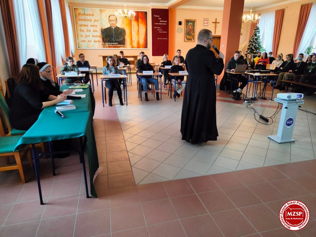 Konkurs, sprawdzający pamięć, refleks oraz logiczne myślenie, zapewnił wszystkim zgromadzonym świetną zabawę i wiele emocji. Był także okazją do pogłębienia wiedzy o naszej szkole oraz jej Patronie – Błogosławionym ks. Bronisławie Markiewiczu.