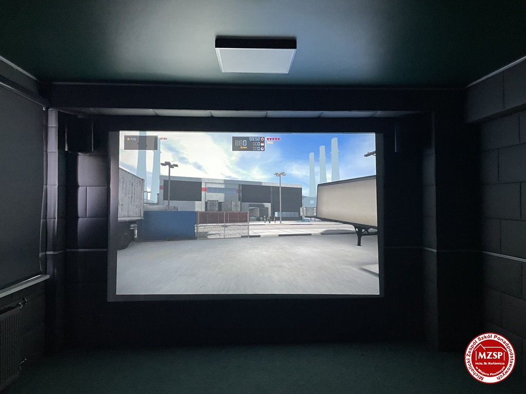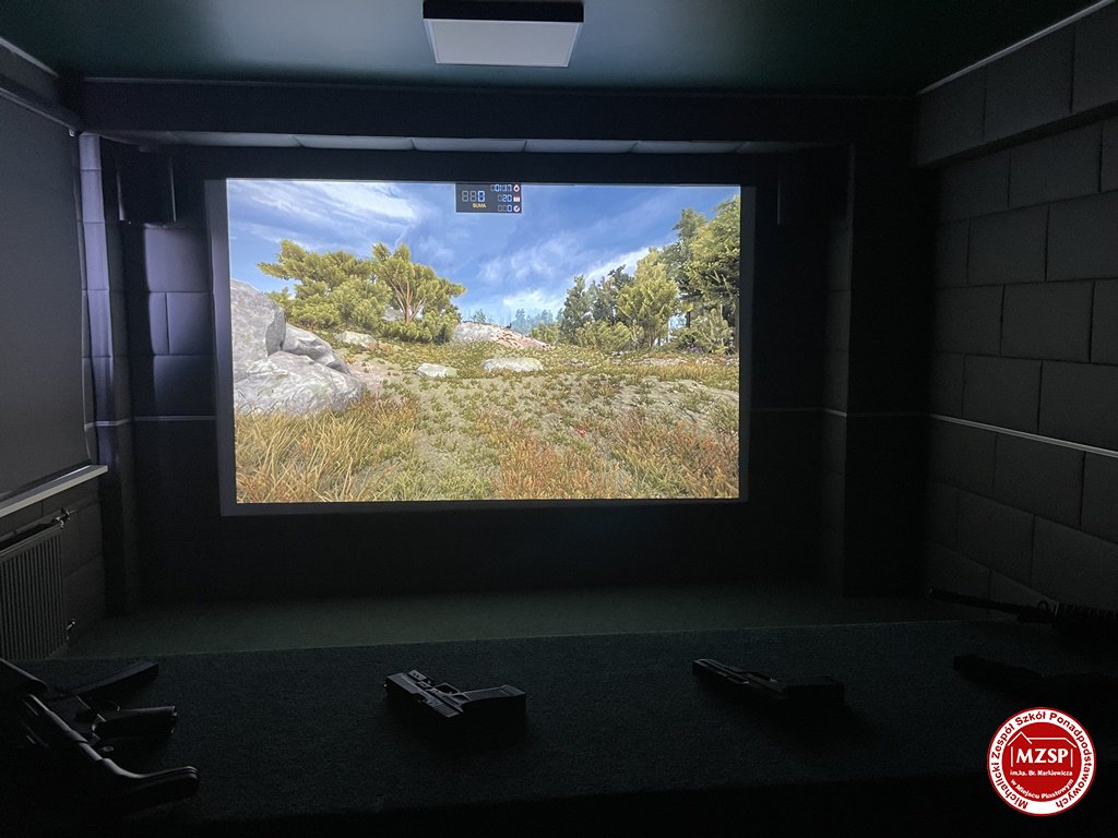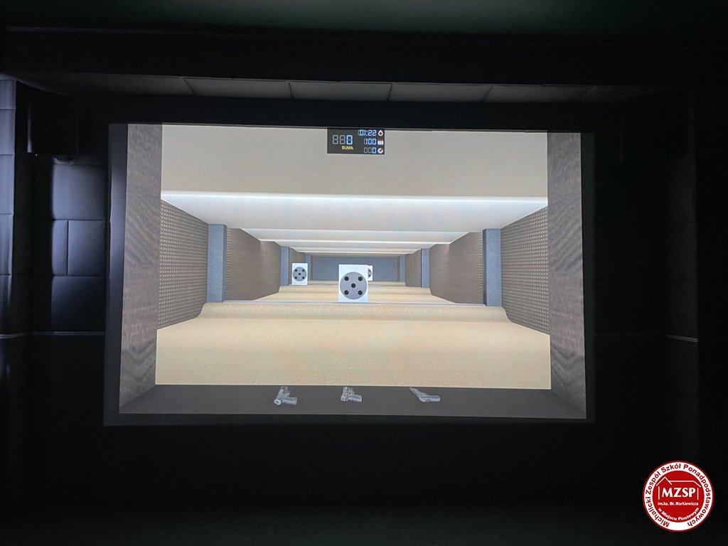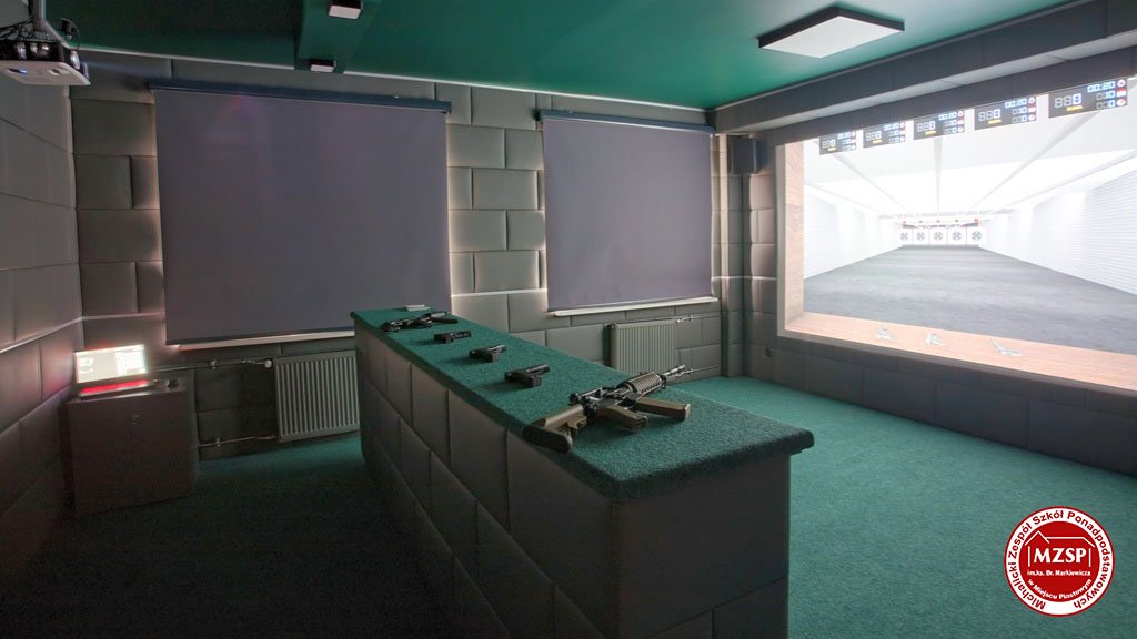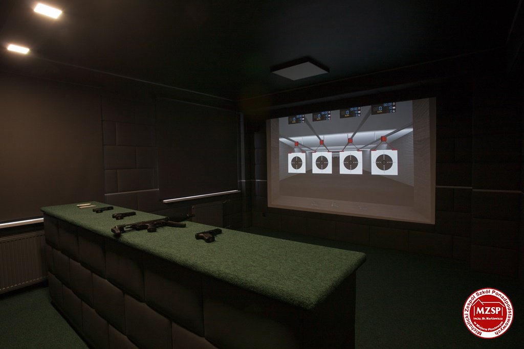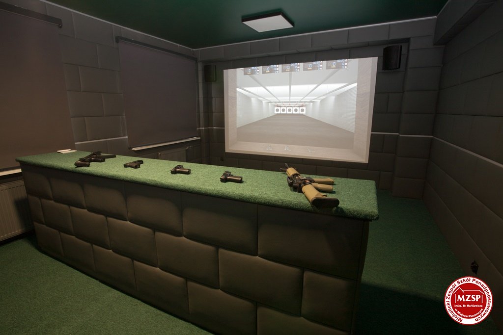 Pierwsze z pomieszczeń stanowi wirtualną strzelnicę laserową z najnowszym oprogramowaniem, posiadające poziom dydaktyczny właściwy miejscom w których szkoleni są funkcjonariusze służb różnych formacji mundurowych.