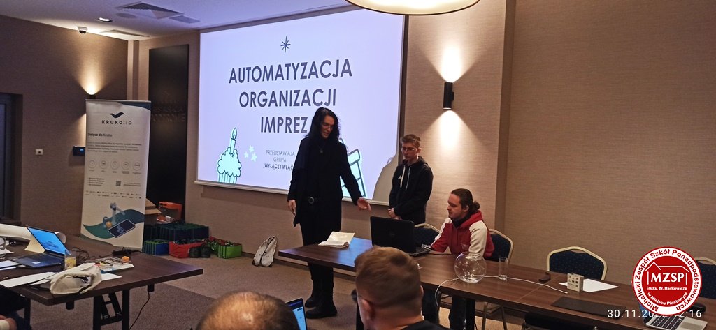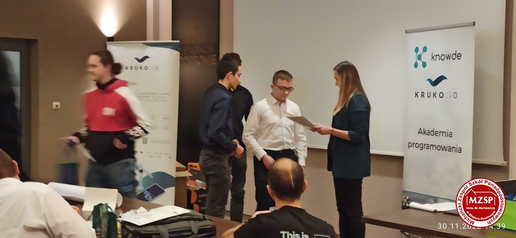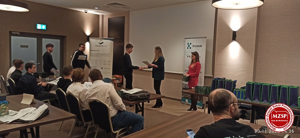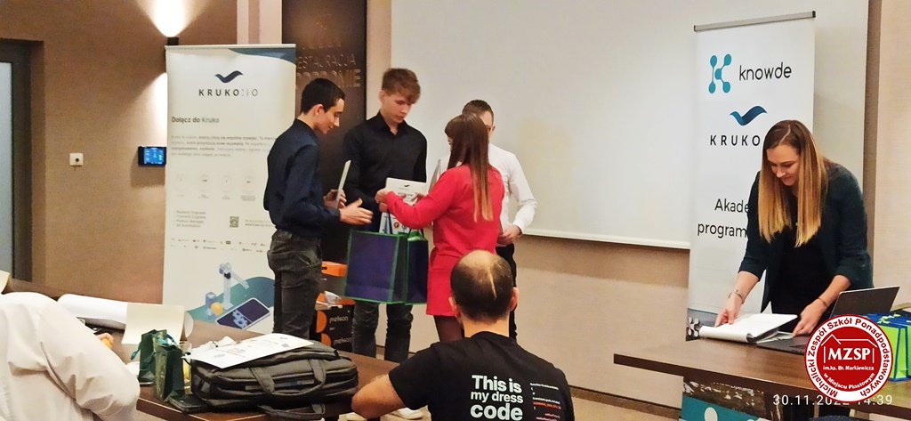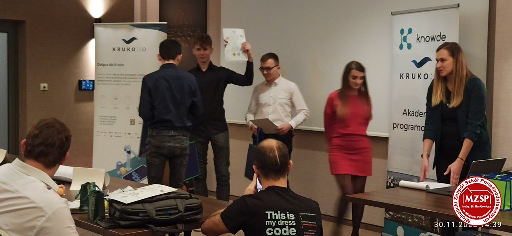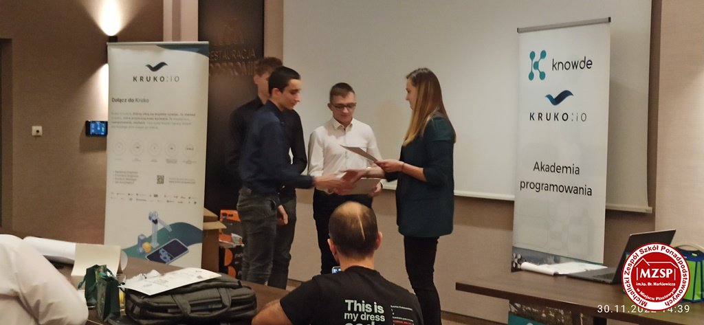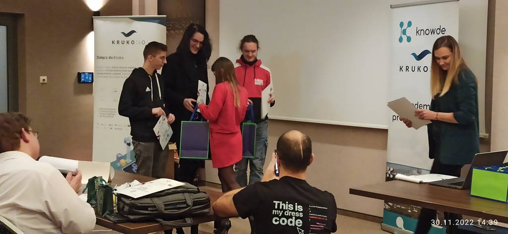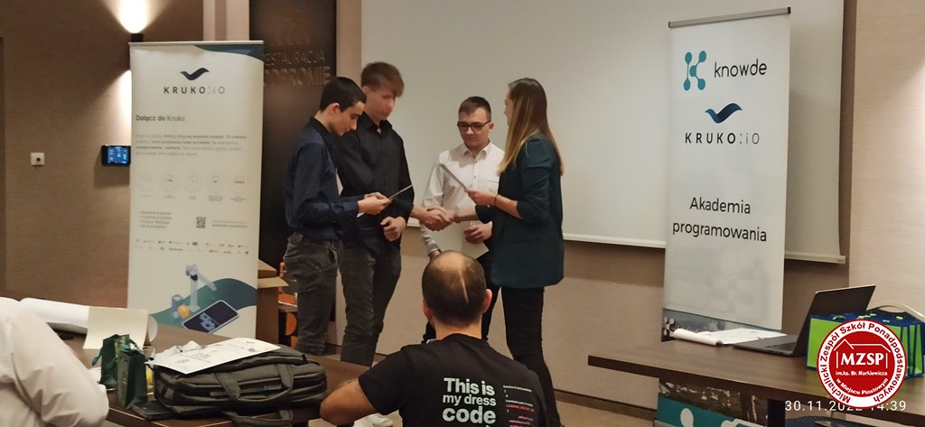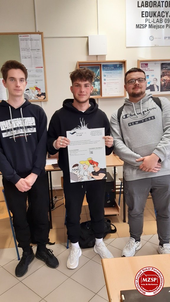 Do Finału wojewódzkiego konkursu Kruko IT CUP z naszej szkoły awansowały trzy drużyny: „Wyłącz i włącz” z klasy 4TIR, „Szyyyft” z klasy 3TI oraz „Szpece z MiZiSiPi” z klasy 4TIA. Finał konkursu odbył się 30 listopada 2022r. w Rzeszowie.