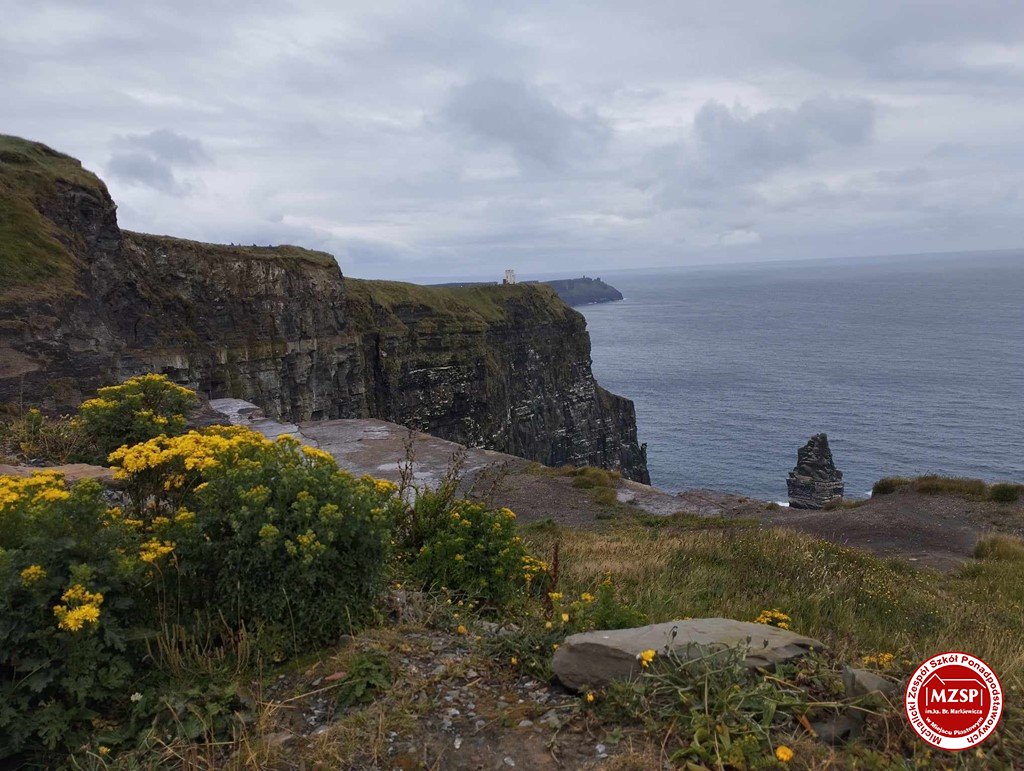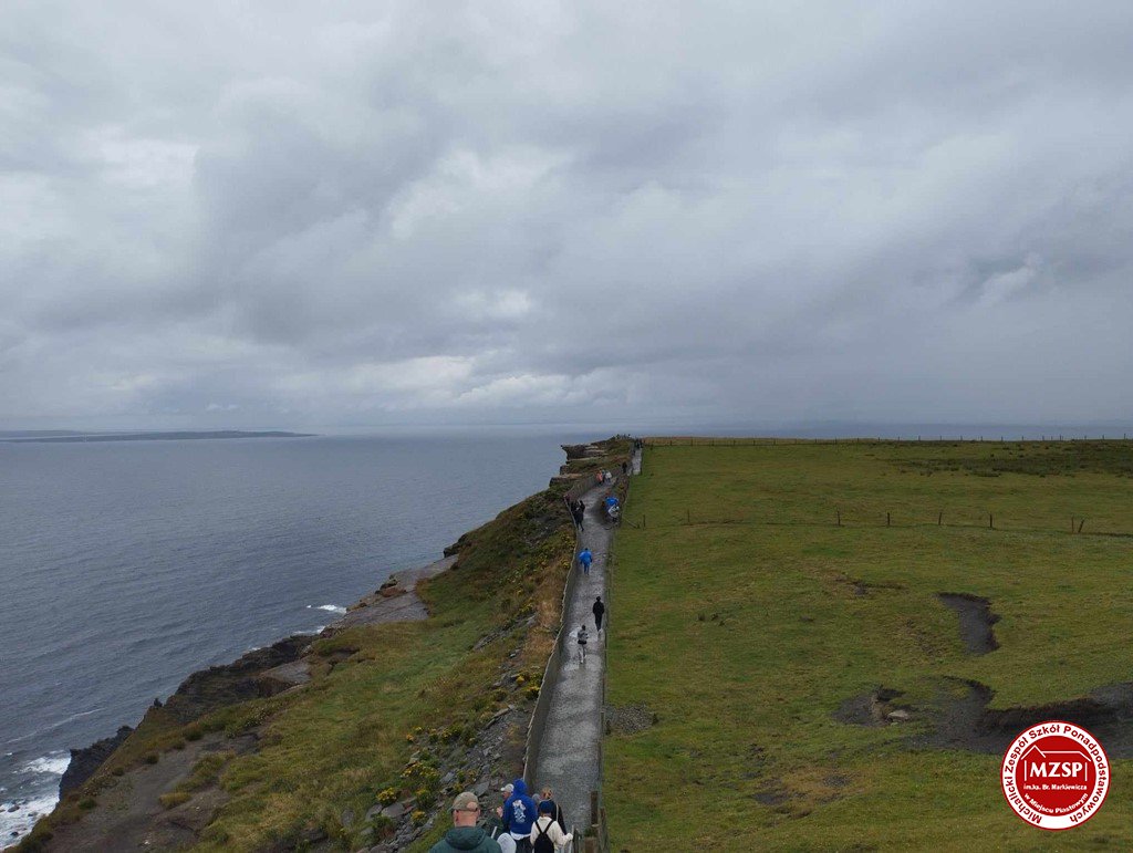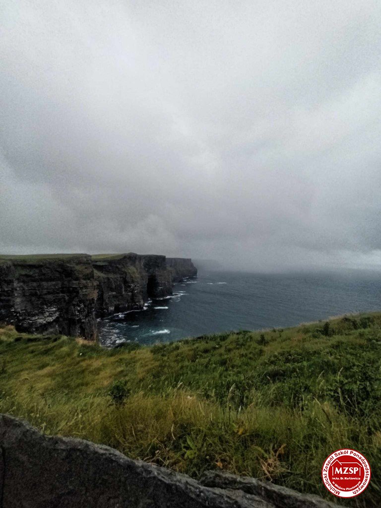 Dopisywała nam typowa irlandzka pogoda, czyli cztery pory roku w ciągu dnia. Jednak deszcz, mgła i odgłosy równomiernych uderzeń wody o skały dodały temu pięknemu miejscu wyjątkowej magii. Zanikająca co kilkadziesiąt minut mgła odsłaniała nam olbrzymie warstwy skalne, ukazując piękno tego miejsca w całej okazałości. Dodatkową atrakcją wycieczki była urocza, piaszczysta plaża w nadmorskiej wiosce Liscanoor, zmienna jak irlandzka pogoda. W jednej chwili długa i szeroka, pokryta wyrzuconymi przez morze wodorostami, meduzami i muszlami małży. Po chwili cała przykryta przez wodę niesioną przez fale uderzające o brzeg. Wróciliśmy mokrzy, zmęczeni ale zadowoleni z przeżytych chwil.