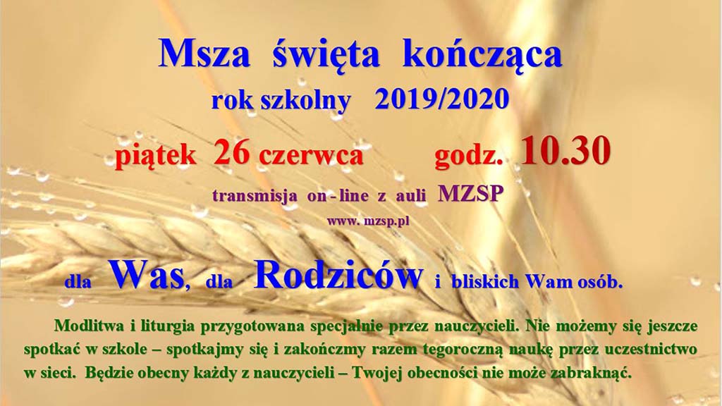 Msza święta kończąca rok szkolny 2019/2020