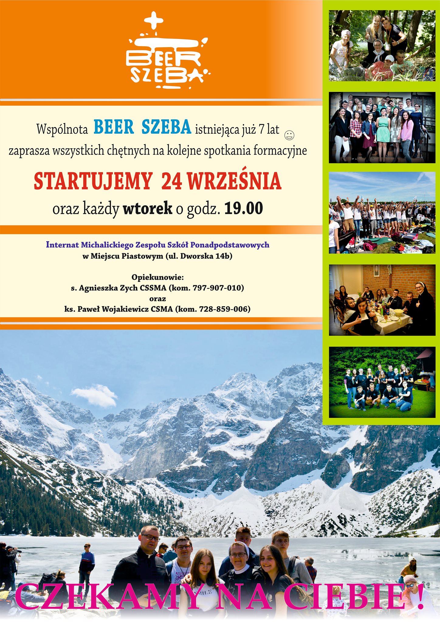 Od 8-u lat w internacie Michalickiego Zespołu Szkół Ponadpodstawowych funkcjonuje grupa formacyjna BEER- SZEBA. Opiekunami wspólnoty są s. Agnieszka Zych CSSMA oraz ks. Paweł Wojakiewicz CSMA.